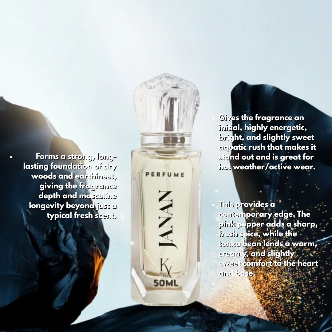 Step into a world of magnetic sophistication with Janan by Kool Vibez 🌟🖤. Inspired by the iconic J. Janan, this 50ML Eau de Parfum is a celebration of confidence, charm, and timeless masculinity — warm, spicy, and irresistibly bold 🔥👑.